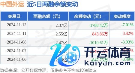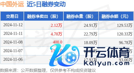 本站音信,11月12日,中海外运(601598)融资买入1374.93万元,融资偿还3172.55万元,融资净卖出1797.62万元开yun体育网,融资余额2.36亿元。
