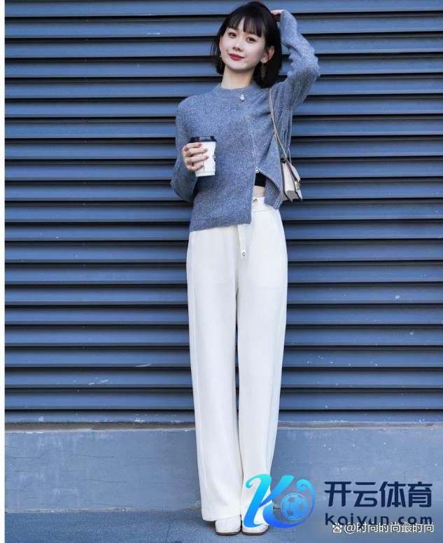 是以在秋季搭配方面,开衫与曳地裤组合的越来越流行。